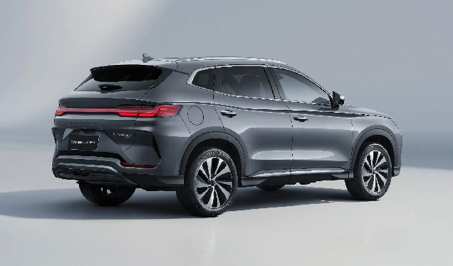 The rear of the BYD SEAL U DM-i is designed to exude elegance, with a continuous taillight in the form of a refined water drop matrix pattern.