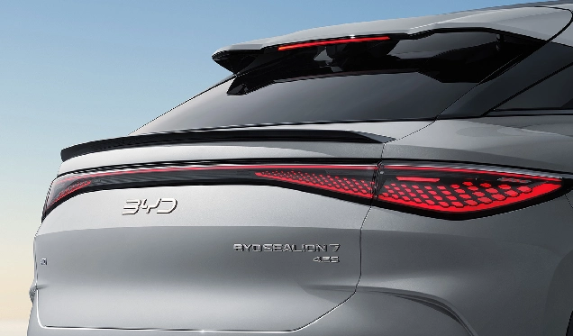 The SEALION 7’s futuristic tail lamps combine sleek linear light strips with water-drop-shaped dots, creating a sense of movement and energy. These design elements evoke the high-speed motion of water droplets, giving the electric SUV a modern aesthetic that stands out on the road.